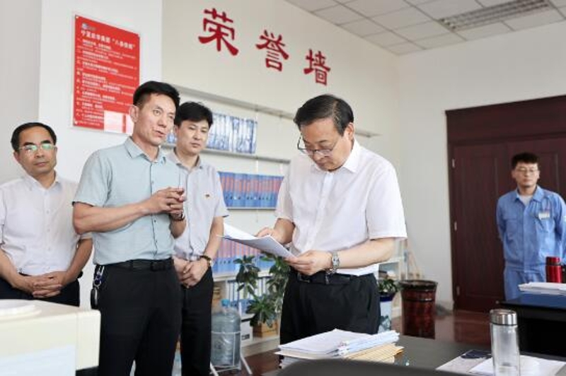 8月15日,梁言顺在宁东基地宁夏沃凯珑新材料有限公司,实地察看企业主体责任落实、危险源安全管控等情况。