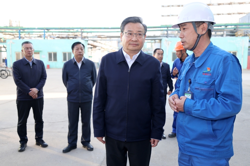 11月1日,梁言顺在宁夏华御化工公司,实地查看自治区“四防”督查组反映的新生蒸汽管道改造不到位问题整改进展情况。