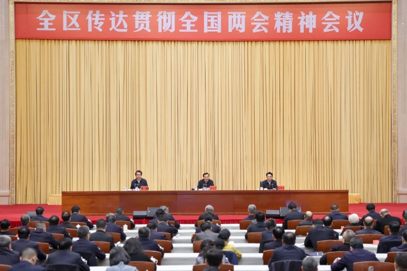 梁言顺指出,总书记在全国两会期间发表了一系列重要讲话,站位中国式现代化全局科学分析国内外形势、深刻阐述重大问题,思想深邃、内涵丰富,充分体现了马克思主义政治家思想家战略家的宏阔气魄、战略视野,彰显了大党大国领袖的高超政治智慧、强烈使命担当,具有很强的政治性、思想性、针对性、指导性,为我们做好工作指明了方向、提供了根本遵循。要认真学习领会,切实把思想和行动统一到总书记重要讲话精神上来,统一到党中央对当前形势的科学判断上来,统一到全国两会部署要求上来,在深学细悟笃行中把牢正确方向、激发奋斗精神,凝心聚力开创全区各项事业发展新局面。