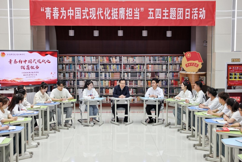 5月4日,梁言顺在宁夏财经职业技术学院图书馆,参加新时代青年学习社“青春为中国式现代化挺膺担当”主题团日活动。