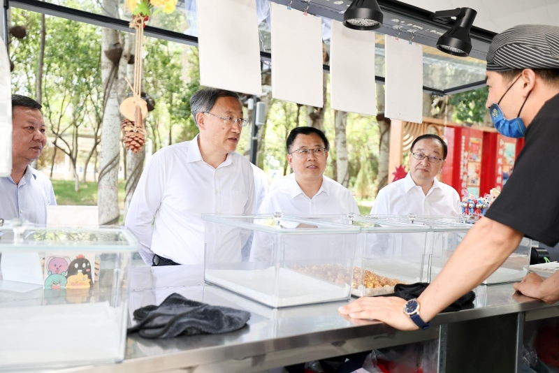8月3日,李邑飞在银川市金凤区凤凰幻城,与沿街商户亲切交流。