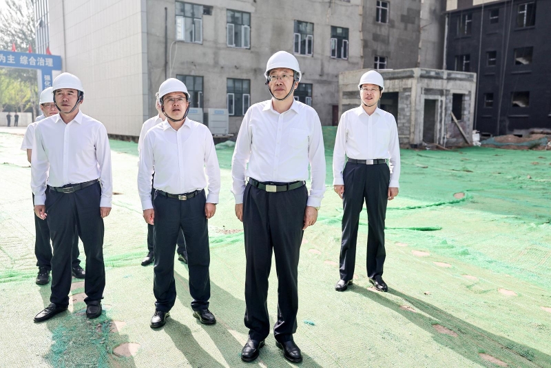 8月3日,李邑飞在清水兰山保交楼项目工地,实地察看项目进展情况。