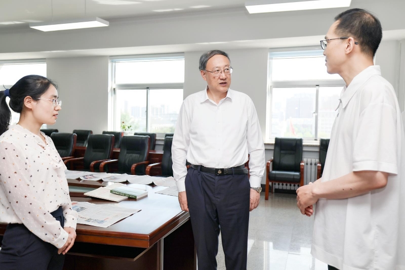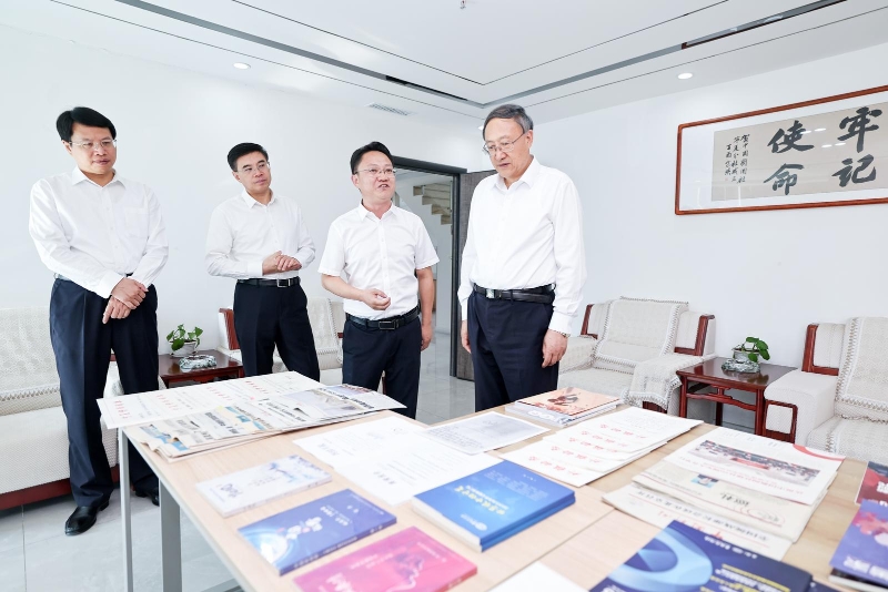 8月20日,李邑飞在中国新闻社宁夏分社,了解融媒体发展情况。