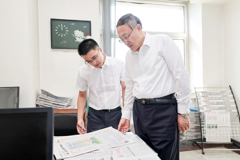 8月20日,李邑飞在经济日报社宁夏记者站,了解宣传报道宁夏工作情况。