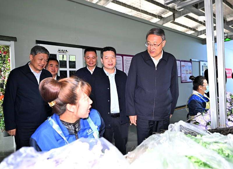 9月22日,李邑飞在隆德县六盘山工业园区人造花工艺有限公司,调研企业科技研发、发挥制造业示范引领作用等情况。