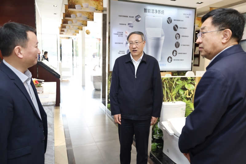 李邑飞在月星家居广场,调研家装厨卫市场及商品“焕新”情况。
