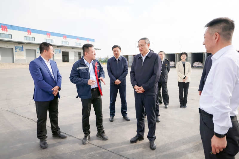 李邑飞在银川国际公铁物流园,调研对外物流通道运行情况。