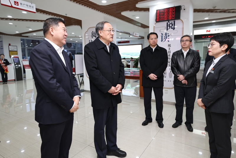李邑飞在宁夏银行北塔支行,调研银行经营发展情况。
