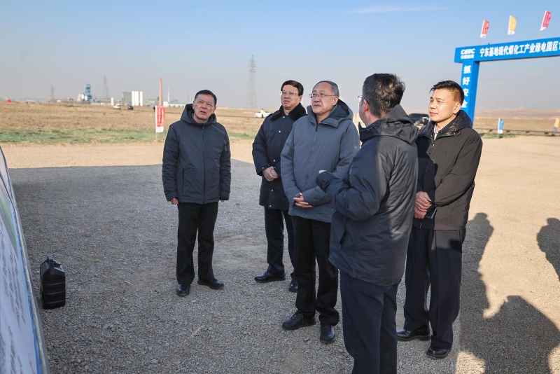 李邑飞在宁东现代煤化工产业绿电园区项目现场,察看工程进度。