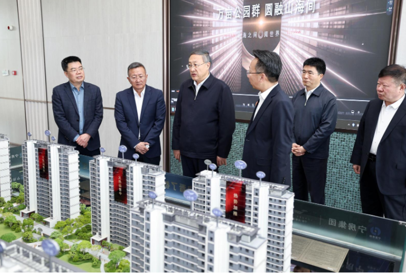 李邑飞在宁房集团阅麓和院项目现场,了解项目规划、土地供应、市场销售等情况。