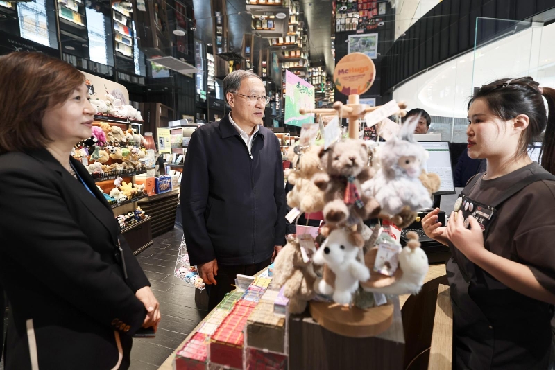 李邑飞在银川市金凤区悠阅城,调研促消费活动开展情况。