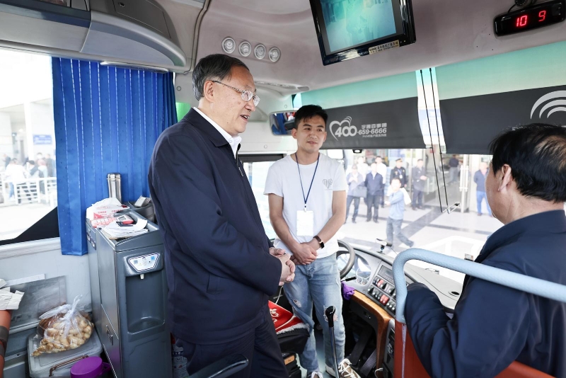 李邑飞走进银川汽车站,到售票窗口了解班次安排和票价,随机登上一辆待发长途客车,向车主、驾驶员询问运营线路、换乘休憩、总体收入等情况,要求相关部门科学研判假期客流量,合理安排运力,加强勤务组织、监测疏导、应急处置,重点盯牢管好危险化学品运输车辆,动态消除“人、车、路、企”安全风险,保障群众安全有序顺畅出行。