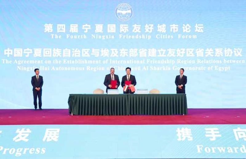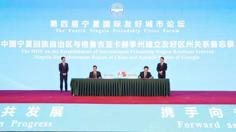 签约环节,张雨浦代表宁夏与埃及东部省主要负责人签署建立友好省区关系协议、与格鲁吉亚卡赫季州主要负责人签署建立友好区州关系备忘录;固原市与蒙古阿尔拜赫雷市、中卫市与蒙古巴彦洪格尔市分别签署建立友好城市关系备忘录。