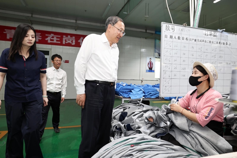 李邑飞来到富贵兰实业有限公司,听取企业发展经营情况介绍,了解员工就业保障、实际收入等,指出要推动党建与生产经营有机融合,创新生产组织模式,做优做强主业,完善职工工资稳定可持续增长机制,带动更多群众致富增收;要求区直相关部门和市县强化党建引领,运用系统思维谋产业抓产业,用好闽宁协作资源,重点围绕服装鞋帽等产业与福建深化政策对接、市场衔接,梳理研究投资项目要素保障需求,积极招引头部企业、延链补链、培育品牌,不断增强产业带动力。