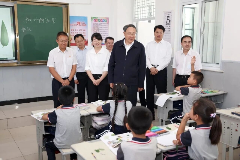 李邑飞在银川市西夏区南梁小学,调研农村学校教育资源整合情况。