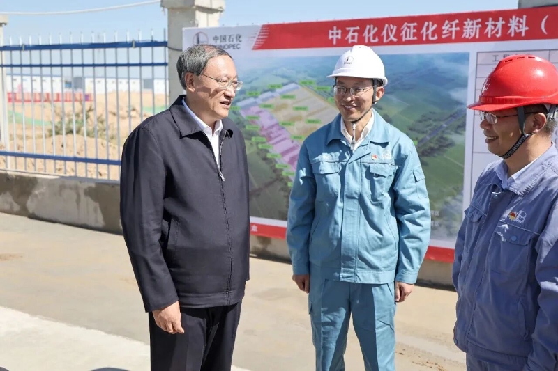 李邑飞在中石化仪征化纤项目现场,调研项目建设情况。