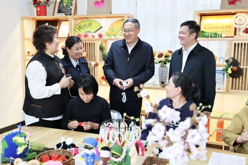 李邑飞在灵武市史家壕村“石榴籽工坊”,调研重点群体稳定就业情况。
