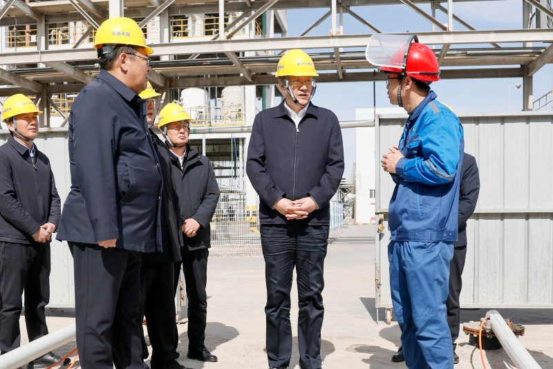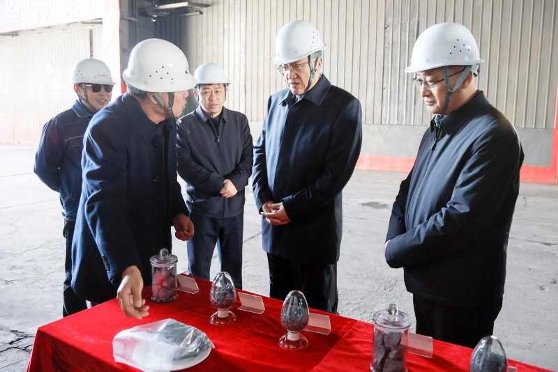 李邑飞在宝马兴庆特种合金有限公司,调研铁合金企业节能降碳改造情况。
