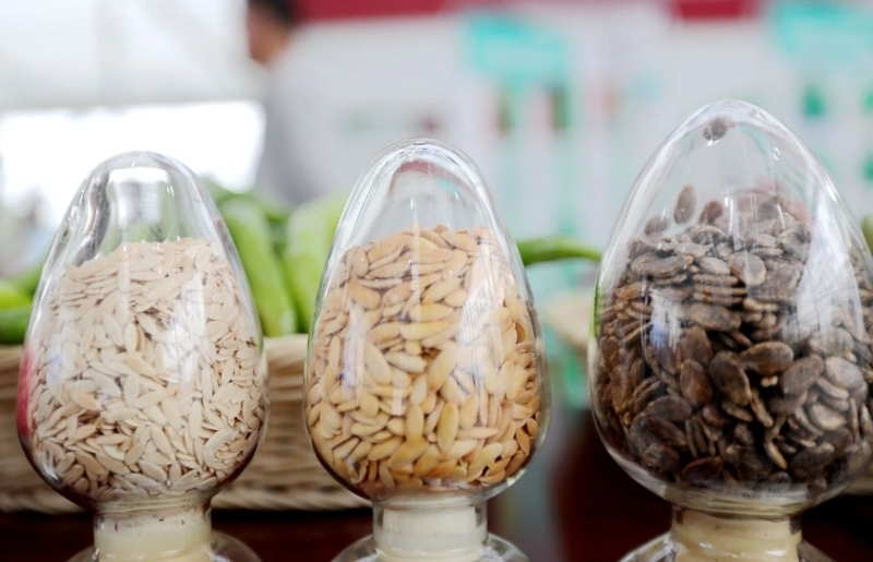 走进泰金种业产业园,多彩的辣椒、红火的番茄、饱满的茄子,还有一些新奇的果蔬引得采访团驻足欣赏。“今天展示给大家的都是我们自己的种子产出的瓜果。”宁夏泰金种业股份有限公司总经理裴夏祥自豪地说,“我们专注‘育品种’的应用性研究,柔性引进专家,不买断技术,自己拿来用,也让大家一起用,比比谁能育出更好的品种来。”