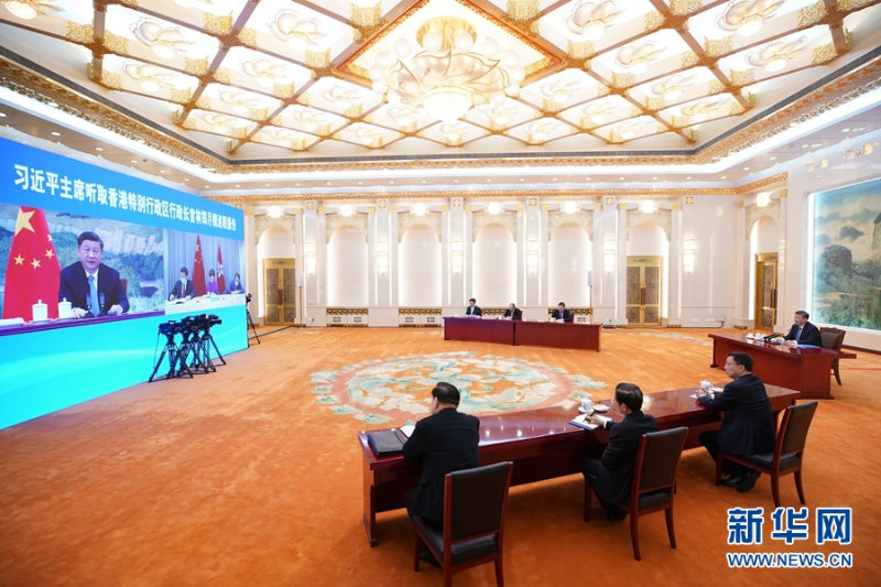 1月27日,国家主席习近平在北京以视频连线方式听取了香港特别行政区行政长官林郑月娥2020年度的述职报告。新华社记者 王晔 摄