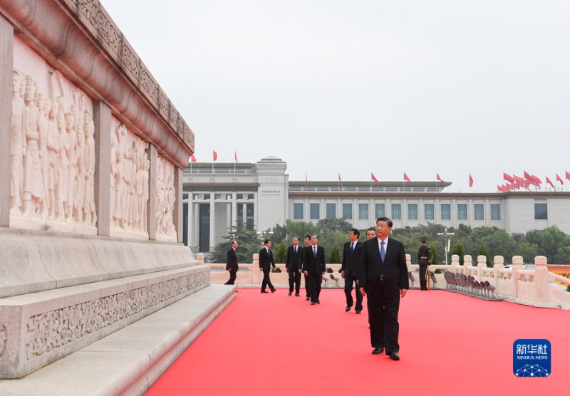 9月30日上午,党和国家领导人习近平、李克强、栗战书、汪洋、王沪宁、赵乐际、韩正、王岐山等来到北京天安门广场,出席烈士纪念日向人民英雄敬献花篮仪式。 新华社记者 饶爱民 摄