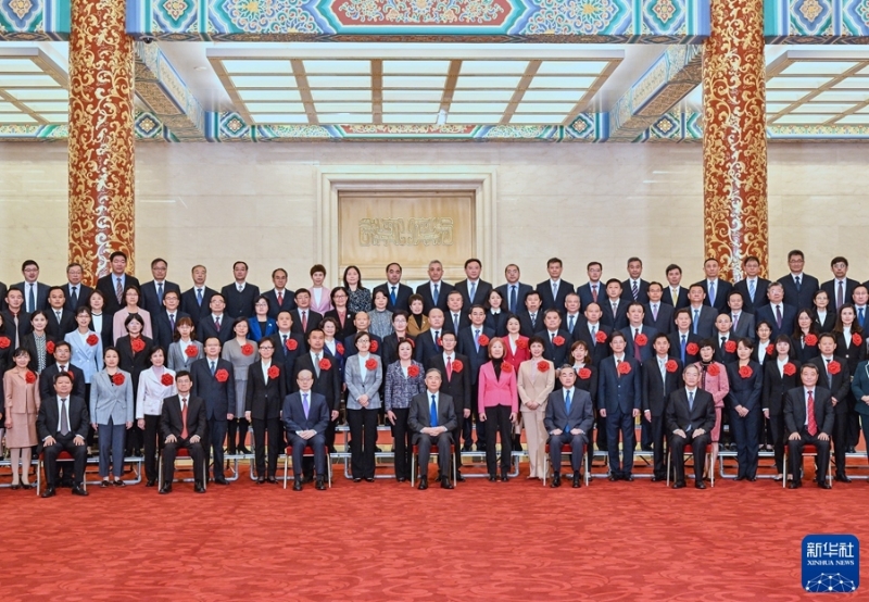 10月15日,全国对台工作系统表彰会议在北京人民大会堂举行。中共中央政治局常委、全国政协主席汪洋出席并讲话。这是会前,汪洋等领导同志接见受表彰代表并合影。新华社记者 饶爱民 摄