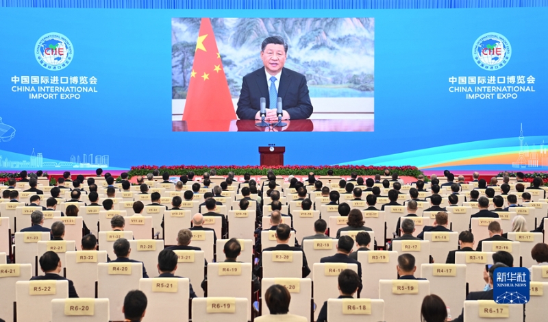 新华社北京11月4日电 11月4日晚,国家主席习近平以视频方式出席第四届中国国际进口博览会开幕式并发表题为《让开放的春风温暖世界》的主旨演讲。