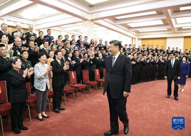 11月5日,党和国家领导人习近平、王沪宁等在北京人民大会堂会见第八届全国道德模范及提名奖获得者。新华社记者 申宏 摄