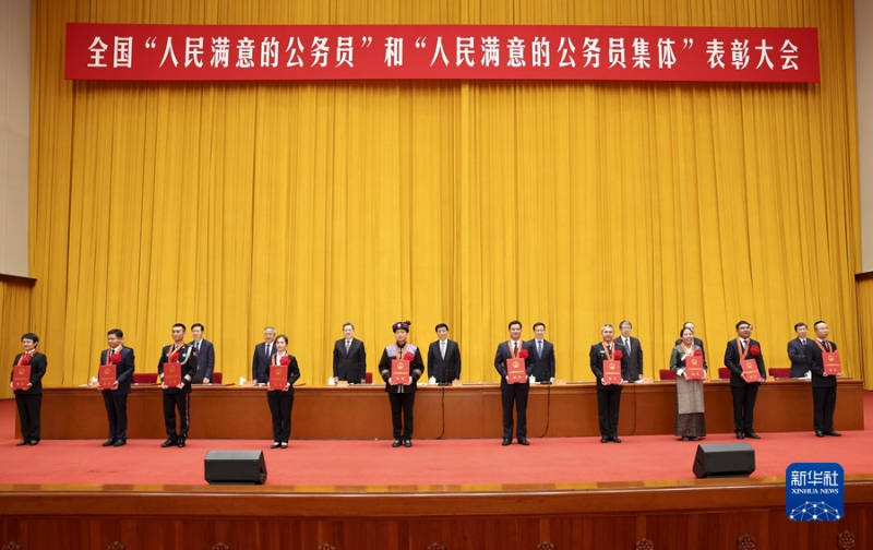 王沪宁在大会上讲话。他表示,习近平总书记亲切会见受表彰代表,充分体现了党中央和习近平总书记对公务员队伍建设的高度重视,对全国“人民满意的公务员”和“人民满意的公务员集体”的高度褒奖,对全国广大公务员的亲切关怀。党的十八大以来,习近平总书记围绕建设人民满意的公务员队伍作出一系列重要论述,为做好新时代公务员工作提供了根本遵循。新征程上,广大公务员要带头旗帜鲜明讲政治,带头学懂弄通做实习近平新时代中国特色社会主义思想,深刻领悟“两个确立”的决定性意义,增强“四个意识”、坚定“四个自信”、做到“两个维护”,始终在政治立场、政治方向、政治原则、政治道路上同以习近平同志为核心的党中央保持高度一致。要带头坚持以人民为中心、做密切联系群众的表率,带头贯彻新发展理念、做推动高质量发展的表率,带头遵守制度、做制度执行的表率,带头立德修身、做涵养廉洁文化的表率。要加强党对公务员工作的领导,努力建设一支让党放心、让人民满意的高素质专业化公务员队伍。