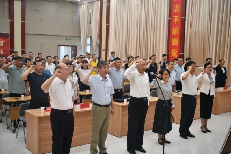 “我志愿加入中国共产党,拥护党的纲领,遵守党的章程……”面对鲜红的党旗,全体党员举起右拳,庄严宣誓。铿锵有力、掷地有声的誓词再次点燃了大家爱党、忠诚、敬业、奉献的激情,也展现了统战系统全体党员为党和人民事业奋斗终身的不变理想和追求。