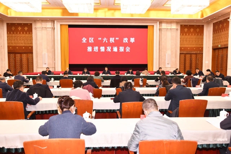 1月2日,全区“六权”改革推进情况通报会在银川召开,向各民主党派、工商联和无党派人士通报“六权”改革推进情况并听取意见建议。自治区党委常委、秘书长、改革办主任雷东生主持会议并讲话。