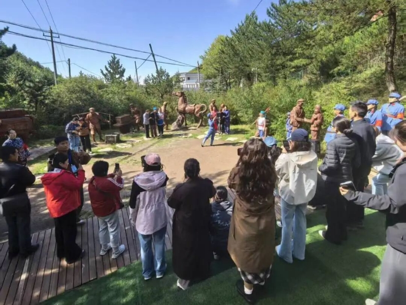 采访团一行沿着小道拾级而上,时而驻足观看“红军伤员互助前行”的情景演绎,时而聆听讲解员结合雕塑讲述背后的历史。当走到“六盘山会师”场景处,演员们高唱红歌的画面,与远处连绵的六盘山景相映,让不少人湿了眼眶。“不是单向听讲解,而是边走边看、边看边感,这种‘沉浸式’比书本里的文字更有冲击力。”采访团成员说。