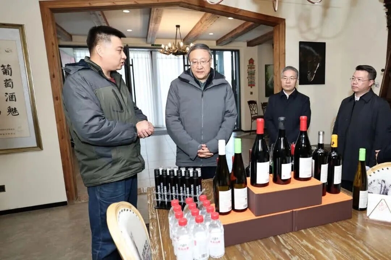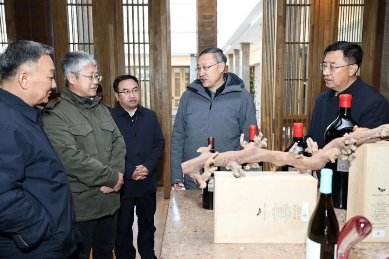 调研中李邑飞强调,习近平总书记对宁夏葡萄酒和文化旅游产业发展寄予厚望,必须牢记嘱托、感恩奋进,紧紧抓住“十五五”夯实基础、全面发力的关键时期,政企携手同题共答,推动葡萄酒与文旅产业深度融合发展。要持续提升品牌效应,发挥龙头企业带动作用,紧盯良种良技良法这一关键,深化产学研合作,以国际认同、业内认可为标准,更大力度促进产品研发、品质提升、颜值焕新,维护好贺兰山东麓产区品牌形象。要大胆解放思想,紧盯市场变化和发展趋势转思路、找出路,分类施策、精准破解酒庄高质量发展难题,强化产区联动,注重差异互补,加强政府引导和政策扶持,稳定高端市场、做优中端市场、开拓海外市场。要充分激发消费潜能,主动顺应分众化多样化需求,创新消费场景,引导消费理念,培养消费习惯,营造浓厚的葡萄酒文化氛围,培育和催生更多消费群体,让葡萄美酒走进千家万户、千店万铺。要积极学习国内外先进经验,探索推出更多新业态新模式,推动葡萄酒酒庄与周边旅游资源串点成线、连线成面,促进葡萄酒产业与文旅、康养、商贸等深度融合,实现经济效益、生态效益、富民效益相统一,为加快推动高质量发展、推进中国式现代化宁夏实践增创新动能新优势。