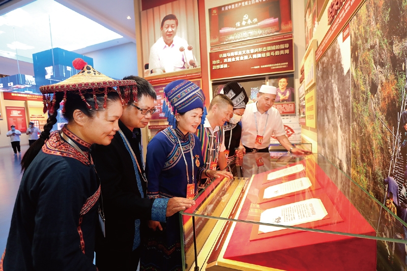 2021年6月30日,在中国共产党成立100周年前夕,全国少数民族参观团来到中国共产党历史展览馆,参观学习“‘不忘初心、牢记使命’中国共产党历史展览”。 中央统战部供图 民族画报社 滕俊/摄