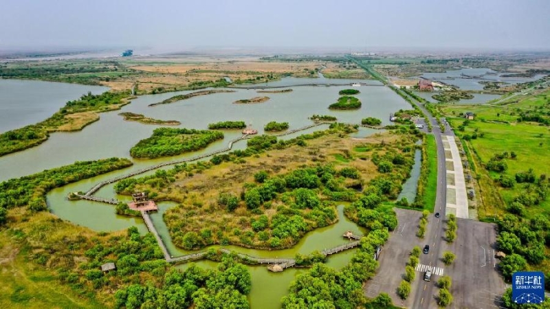 这是5月13日拍摄的山东黄河三角洲国家级自然保护区景色(无人机照片)。新华社记者 郭绪雷 摄