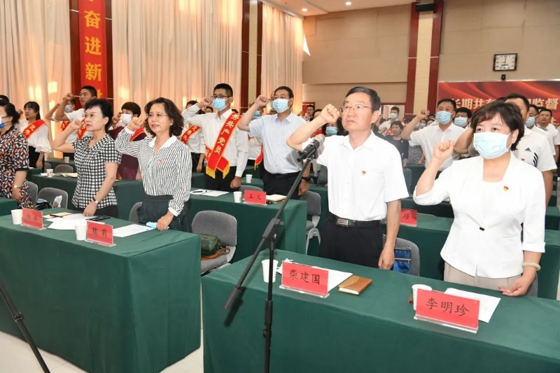 “我志愿加入中国共产党,拥护党的纲领,遵守党的章程,履行党员义务,执行党的决定,严守党的纪律,保守党的秘密,对党忠诚,积极工作,为共产主义奋斗终身,随时准备为党和人民牺牲一切,永不叛党。 ”一日入党,一生忠诚。面对鲜红的党旗,全体党员重温入党誓词,铿锵有力的宣誓声响彻会场,这是初心使命的再宣誓,这是接续奋斗的再出发。