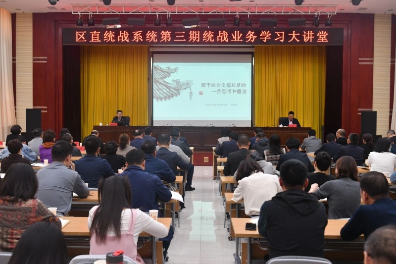 10月13日下午,区直统战系统组织举办第三期统战业务学习大讲堂,邀请自治区党委政研室经济研究处处长何金武围绕“关于综合文稿起草的思考和体会”进行授课辅导。