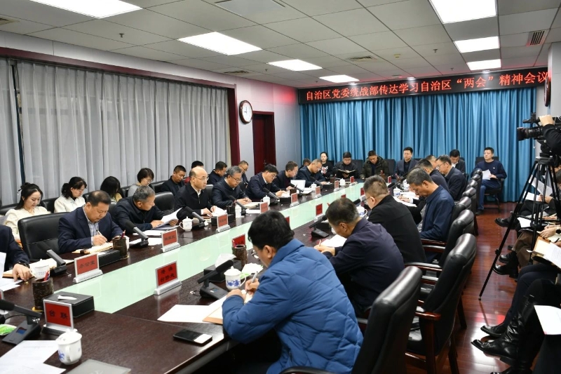 会议强调,要深入学习领会,统一思想认识。将学习贯彻自治区“两会”精神与贯彻落实党的二十届三中全会精神和习近平总书记考察宁夏重要讲话精神结合起来,与贯彻落实自治区党委十三届八次、九次、十次全会精神结合起来,一体学习领会、整体融合贯通,不折不扣贯彻落实好党中央和自治区党委的部署要求,切实担负起凝聚人心、凝聚共识、凝聚智慧、凝聚力量的职责使命。要锚定目标任务,展现担当作为。始终保持“开局即加速、起步即冲刺”的劲头,聚焦加快创建铸牢中华民族共同体意识示范区、坚持我国宗教中国化方向等重点任务,优先落实“牵一发而动全身、落一子而满盘活”的重要举措,增强工作预见性、主动性、创造性,推动统战领域改革稳扎稳打、走深走实。要充分发挥“三大助力行动”、“三个一”服务团活动、“双实双有工程”、“两个健康七个自觉”工程等平台载体作用,最大限度团结统战对象、调动统战资源,为全区经济社会高质量发展大局贡献统战所能。要发扬实干作风,提升工作质效。坚持干字当头、实字打底,注重精耕细作、精准发力、精益求精,明确抓什么、怎么抓、抓出什么效果,细之又细、实之又实地谋划和实施好统战各领域工作,提升制度化、规范化、科学化水平,以“咬定青山不放松”的执着确保各项任务落地生根、开花结果,切实展现“四有四作”统战精兵良好形象。