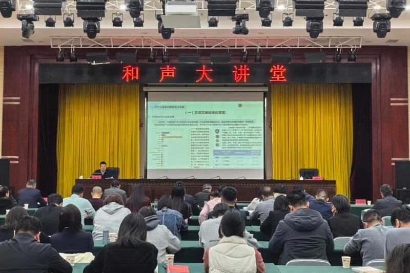 12月11日,自治区党委统战部与民建宁夏区委会共同举办2025年第七期“和声”大讲堂。民建中央委员、自治区政协常委、宁夏中科嘉业新能源研究院院长李立和自治区政协常委、民建宁夏区直工委主委、宁夏国有资本运营集团公司副总经理海涛分别以《“双碳”目标下的新能源行业转型发展》《构建新型电力系统 推进绿色低碳转型》为题作专题讲座。自治区党委统战部、各民主党派宁夏区委会、自治区工商联、宁夏社会主义学院、自治区文史馆干部及部分民建会员聆听讲座。