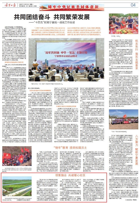颐和城府社区是宁夏基层社区的一个缩影。近年来,宁夏坚持从基层社区抓起,将建设多民族互嵌式社区作为促进各族群众交往交流交融的重要途径,以银川长城花园社区、石嘴山府佑水香社区、吴忠金花园社区、固原雁岭社区、中卫幸福社区为代表的全区多民族社区居民亲如一家。如今,宁夏各族群众正携手奋进在“努力创建铸牢中华民族共同体意识示范区”的新征程上,一幅邻里相亲、社区和谐、民族团结的幸福图景,正在宁夏大地徐徐展开。