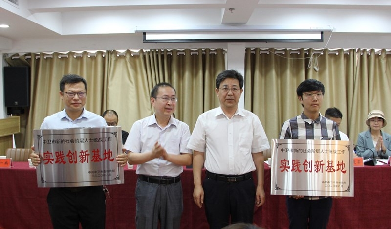会议举行了中卫市新的社会阶层人士统战工作实践创新基地授牌仪式,向宁夏阳光大麦地文化产业园和宁夏辅德(中卫)律师事务所颁发了牌匾。