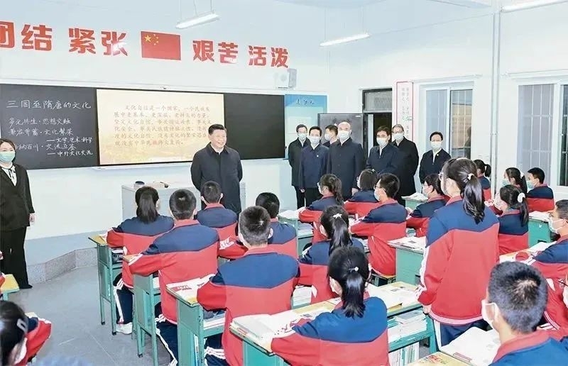 2022年10月26日至28日,中共中央总书记、国家主席、中央军委主席习近平在陕西省延安市、河南省安阳市考察。这是26日下午,习近平在延安市延安中学枣园校区高一(2)班教室,同师生亲切交流。新华社记者 燕雁/摄