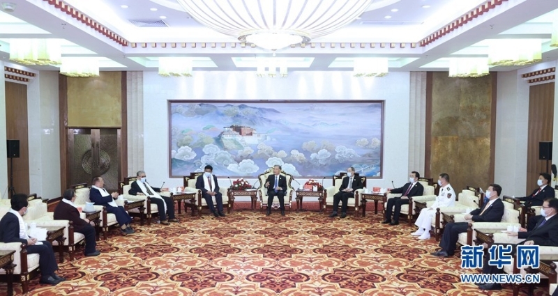8月18日,以中共中央政治局常委、全国政协主席汪洋为团长的中央代表团飞抵拉萨,出席西藏和平解放70周年庆祝活动。受党中央和习近平总书记委托,汪洋在拉萨饭店看望在藏领导干部、老同志白玛赤林、帕巴拉·格列朗杰和列确、巴桑,以及阿沛·阿旺晋美同志家人代表,向他们表示亲切问候。新华社记者刘彬 摄
