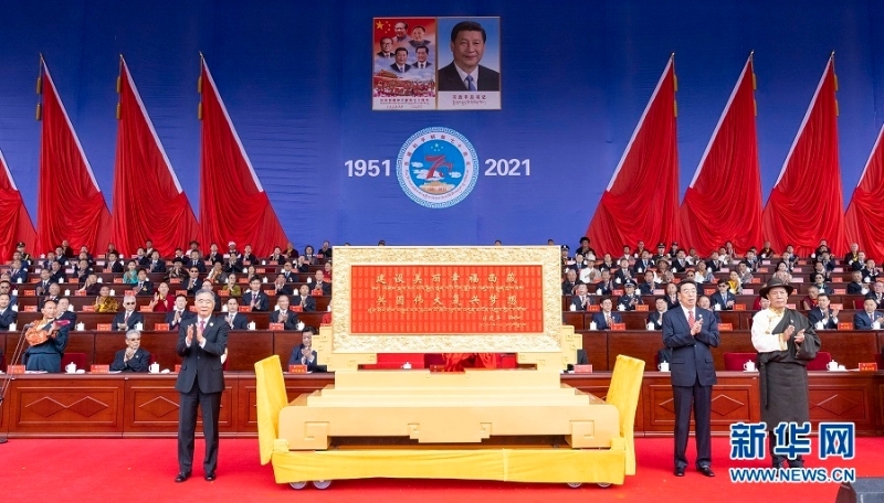 庆祝西藏和平解放70周年大会隆重举行 习近平在贺匾上题词