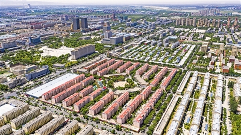 吴忠市利通区金星镇金花园社区航拍图。从航拍照片看,广场位于社区的中心,广场也是社区各族居民的活动中心、交往中心和休闲中心。记者 党硕 摄
