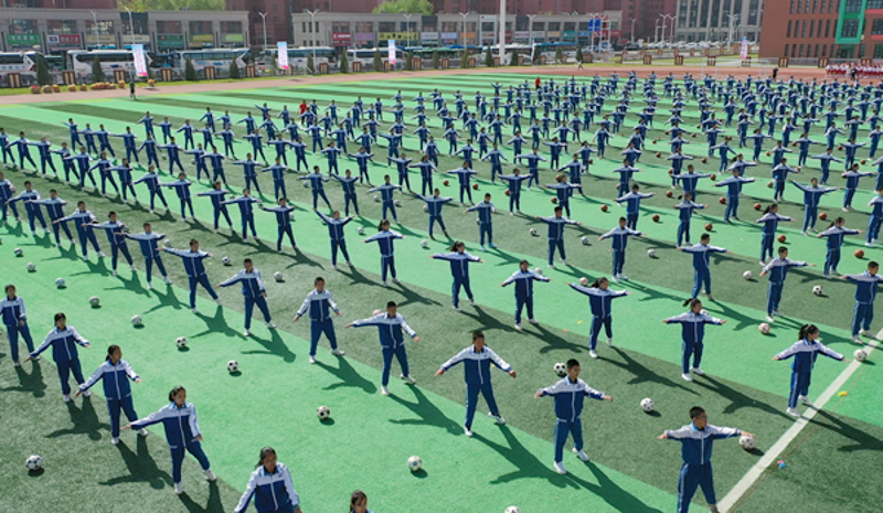 近年来,兴庆区坚持五育并举,深化体教融合。作为全国青少年校园足球试点县(区)和自治区体教融合试点单位,兴庆区不断加大学校体育设施投入、加快学校体育课程改革步伐、加速提升学生体育竞技和锻炼水平。各中小学积极探索体育家庭作业,坚持“每天锻炼1小时”,积极推广“1+X”体育大课间,全面激发校园活力。