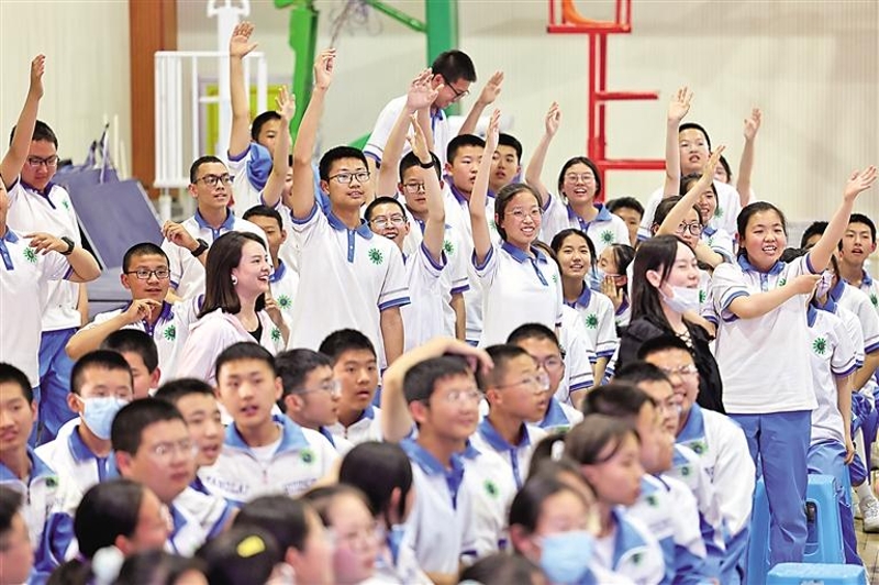 在竞答环节,选手紧盯屏幕,时刻准备抢答。5月19日,银川市唐徕中学南校区初二年级学生在进行知识竞答。当天,银川市金凤区长城中路街道金宇名庭社区团支部联合银川唐徕中学南校区思政教研组开展“铸牢中华民族共同体意识”知识竞赛活动,学生们围绕党的二十大报告、民族法规、民族政策、民族习俗等内容进行知识竞赛。(记者 党硕 摄)
