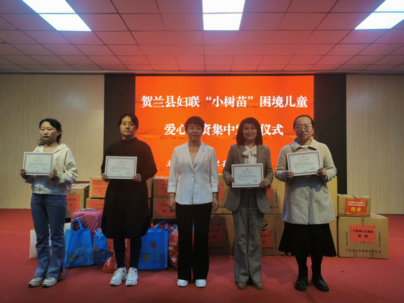 贺兰妇联今年举行的小树苗困境儿童微心愿爱心物资集中发放仪式。