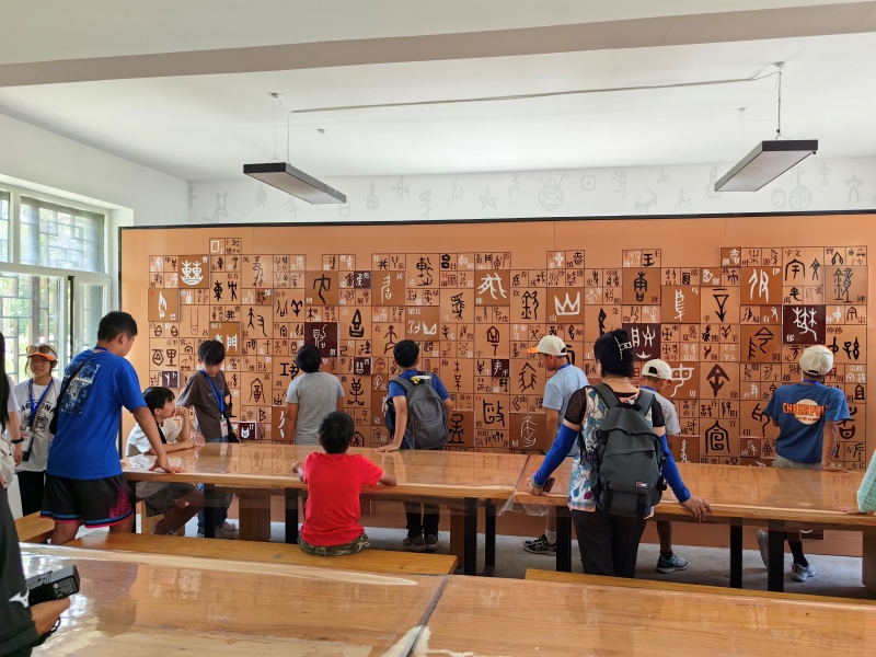 景区内,研学课程《汉字密码》受到台湾青少年的青睐。研学老师为他们详细介绍了文字从甲骨文、金文、小篆、隶书再到如今行书的发展脉络,通过生动的例子和互动的方式,让台湾青少年深刻体会到汉字不仅仅是书写的工具,更是一种文化的传承。随后,开展姓氏徽章DIY活动,台湾青少年从320个汉字中选出自己姓氏,用徽章机体验制作,经过按压,一个个刻录着自己姓氏的徽章就在他们手中诞生了!