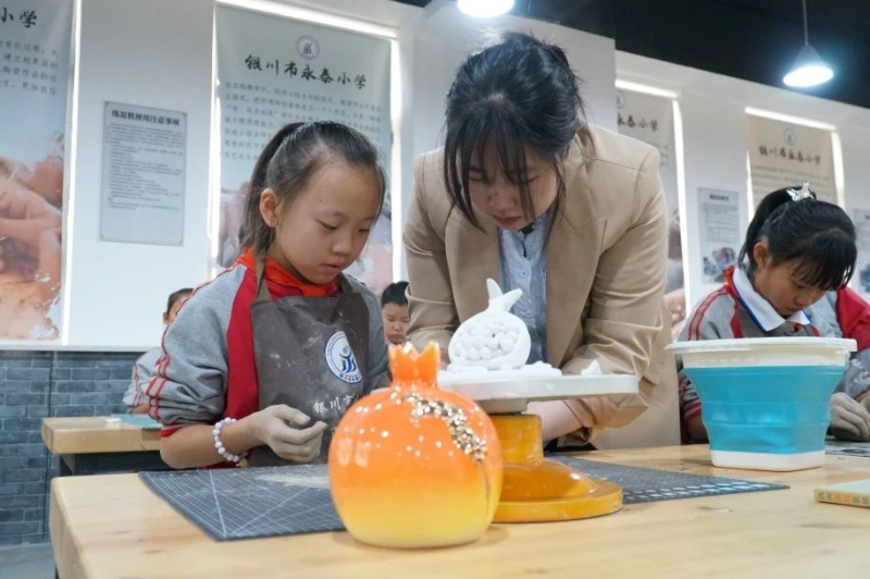 在艺术陶艺社团课堂上,教师高义舒与同学们围坐在一起,将大家用陶土搓揉得圆圆的石榴籽一颗一颗塞进石榴“肚子”里。在制作中,还向同学们提问“石榴有什么特点”“与民族团结之间有什么关系”等问题。“通过手中的陶土,带着同学们走进中华民族文化的瑰丽世界,从而激发起对民族文化的热爱之情,并将这份热爱转化为传承的动力。”高义舒说。